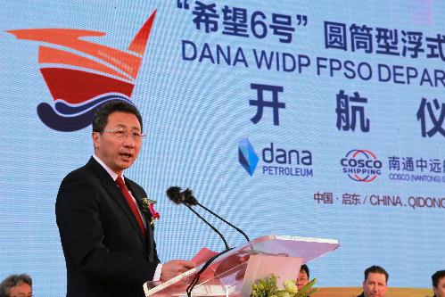 On 9th February, COSCO Shipping Industry’s major shipyard - COSCO Nantong Shipyard has successfully delivered the FPSO “Western ISLES”. The sailing ceremony was hold in COSCO Qidong Offshore. This FPSO is cylinder type which is designed by COSCO Nantong Shipyard and built for UK oil company DANA. the FPSO will be soon sent to work in UK North Sea, and it will help DANA to develop North Sea business and establish a new production line in there. FPSO “Western ISLES” is the first EPC project in China offshore construction industry, and fills many technology blank of FPSO technical design, module construction, platform test, which means China offshore construction industry has made a great jump from offshore base production to advanced production design and construction.